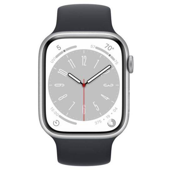 Apple iwatch 8 45mm Midnight Series 8 features a big, brilliant Always‑On display. Narrow borders push the screen right to the edge, resulting in an elegant integration with the curvature of the case.